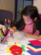 Mit Buntstiften, Schere, Farbkasten, Tonpapier, Perlen, Heu, Wolle etc. können